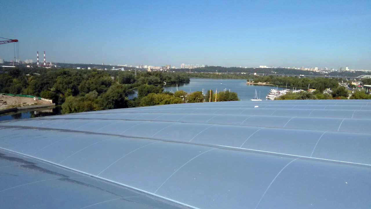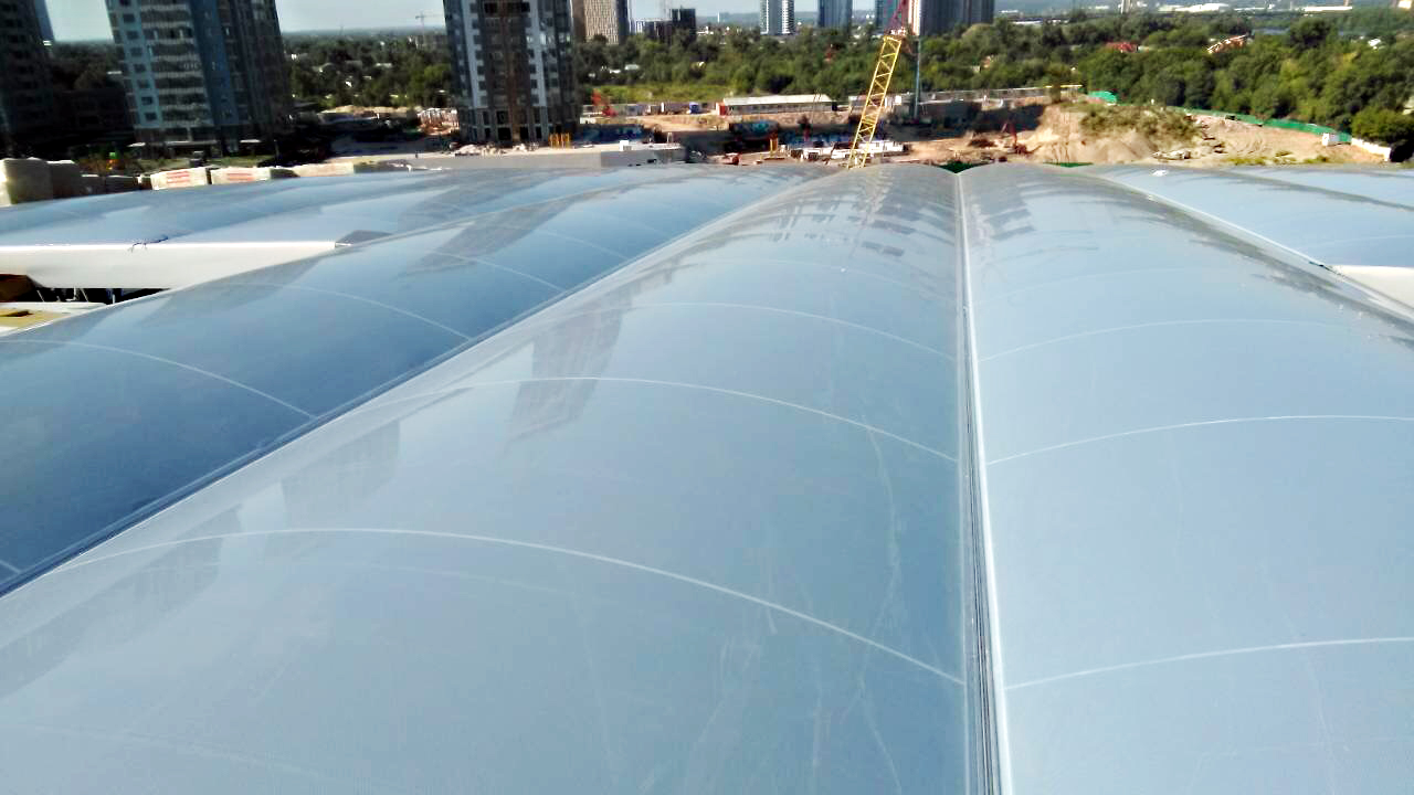 Система ETFE складається з мембран-подушок, зварених повітронепроникним способом і змонтованих за допомогою алюмінієвих профілів, підтримуваних легкої несучою конструкцією каркаса. Виготовлення та монтаж подібної легкої конструкції унікальні, аналогів на території України немає.