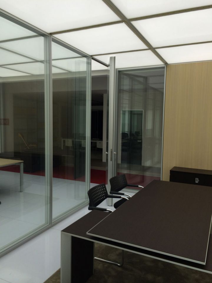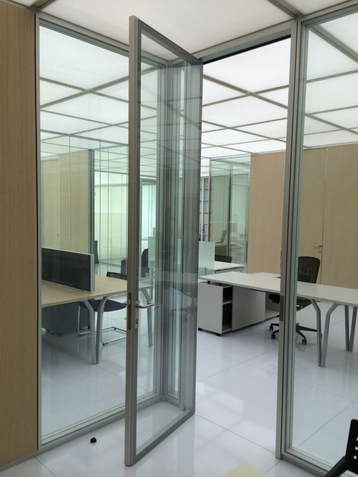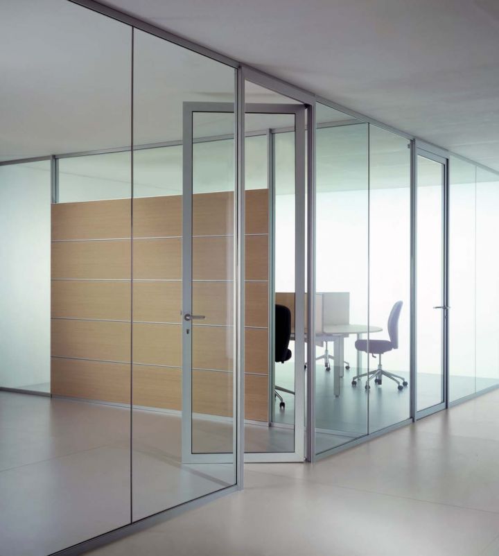 Іншими словами, суцільноскляні офісні перегородки варто використовувати тоді, коли простір обмежений тільки зовнішніми стінами, тоді як внутрішній поділ на робочі зони і зони відпочинку, переговорні зони і громадські зони відбувається вже з застосуванням інших елементів. Цими самими елементами якраз і виступають сьогодні офісні скляні перегородки.