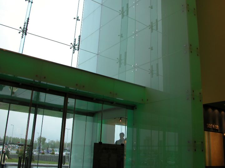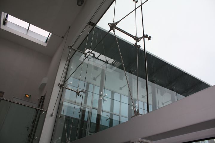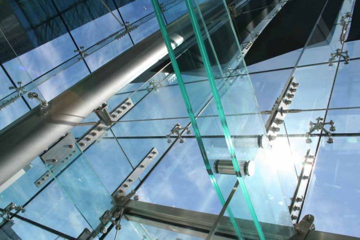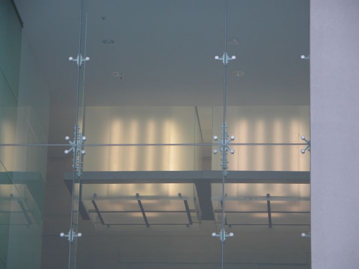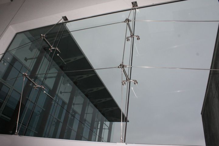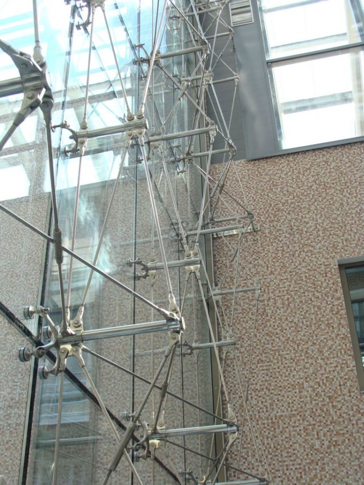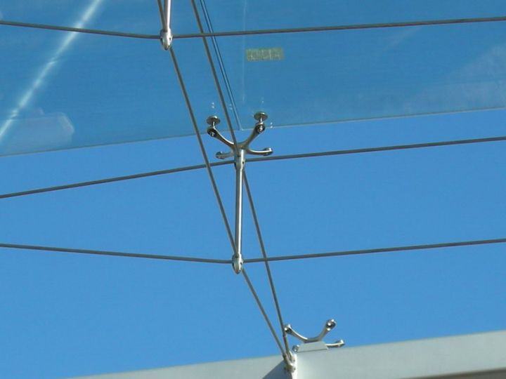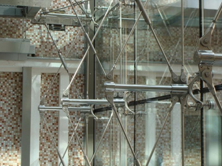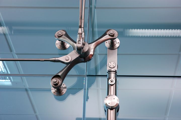 Спайдерна система скління може застосовуватися і як тепла конструкція з використанням склопакетів, і як холодна, використовуючи моноскло (загартоване ESG або триплекс ESG. ESG.PVB).