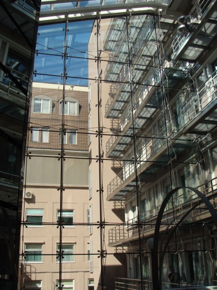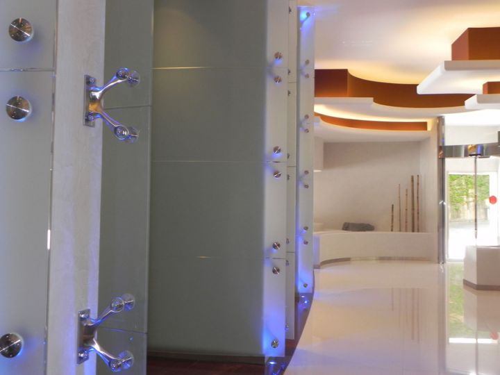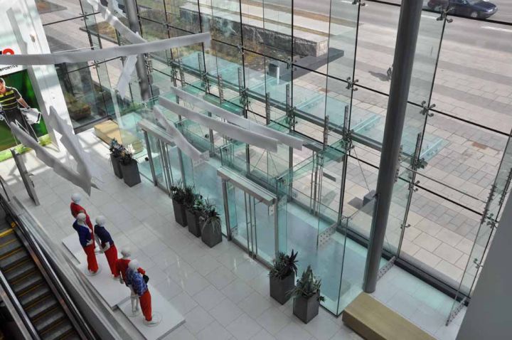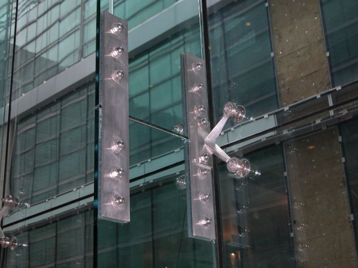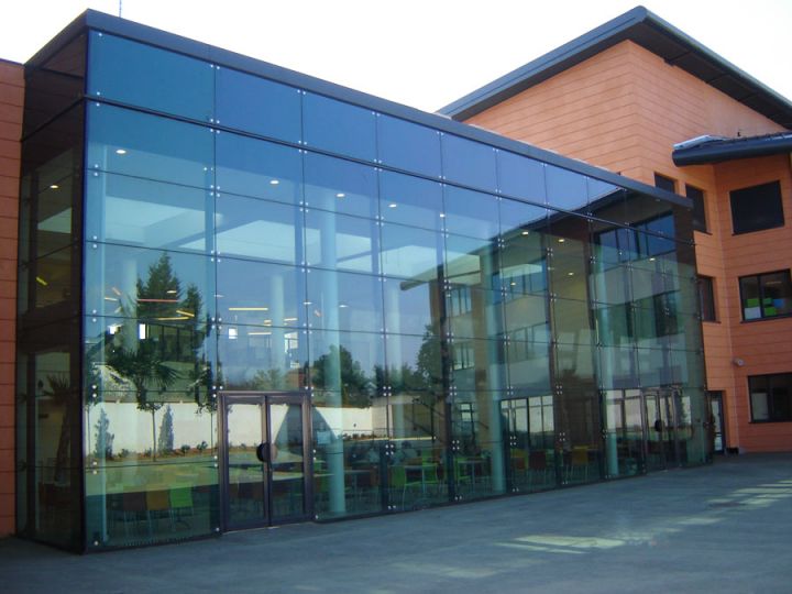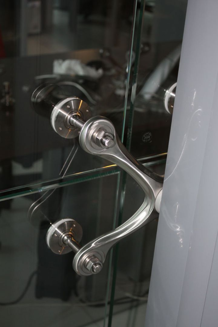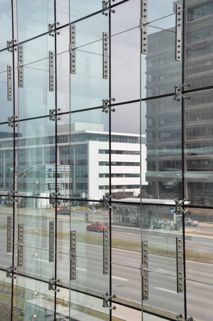 Спайдерна система скління може застосовуватися і як тепла конструкція з використанням склопакетів, і як холодна, використовуючи моноскло (загартоване ESG або триплекс ESG. ESG.PVB).