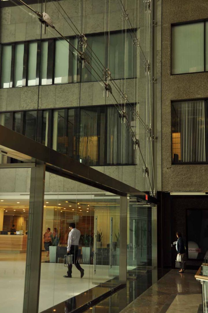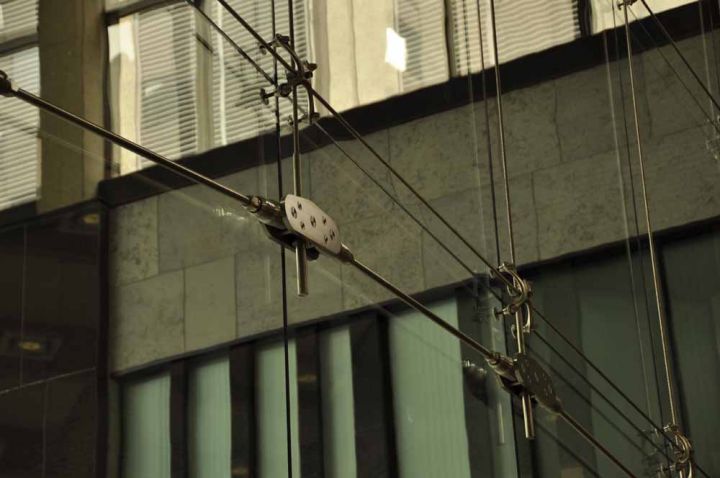 Як подконструкції для спайдерної системи скління можуть бути використані несучі елементи будівель (моноліт, металевий каркас), системи вантових розтяжок і скляні ребра жорсткості, виконані зі скла триплекс TVG.