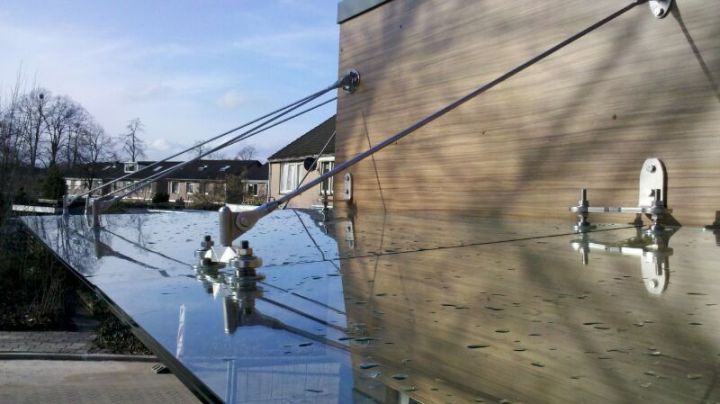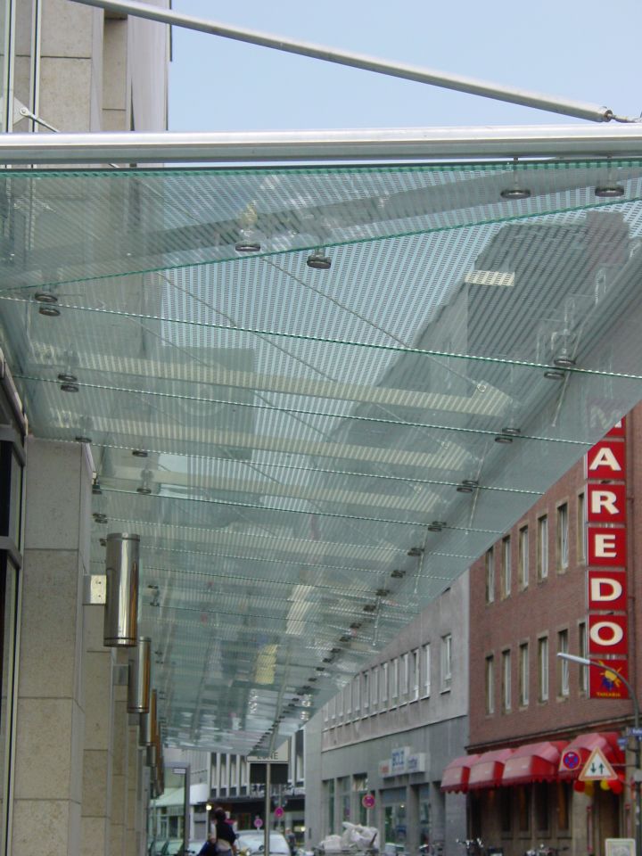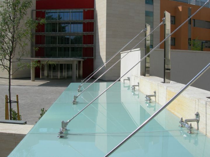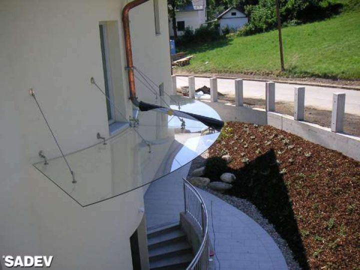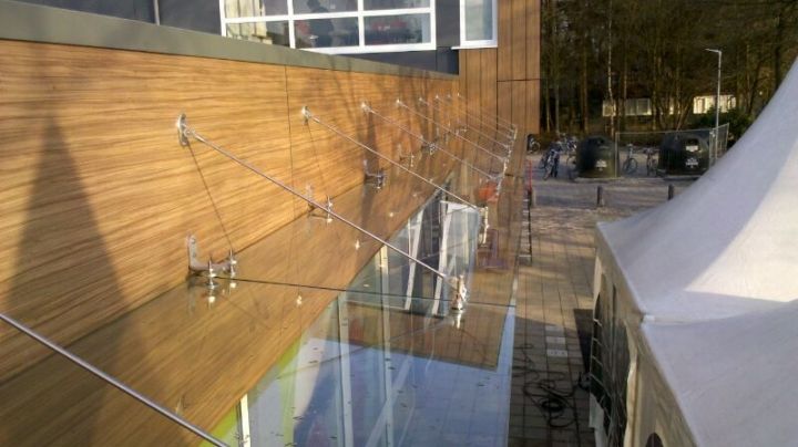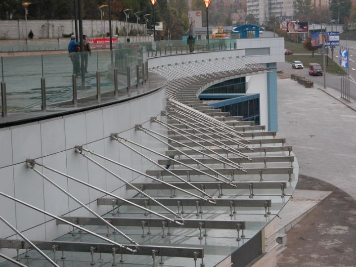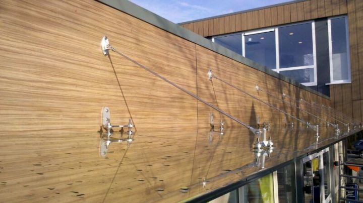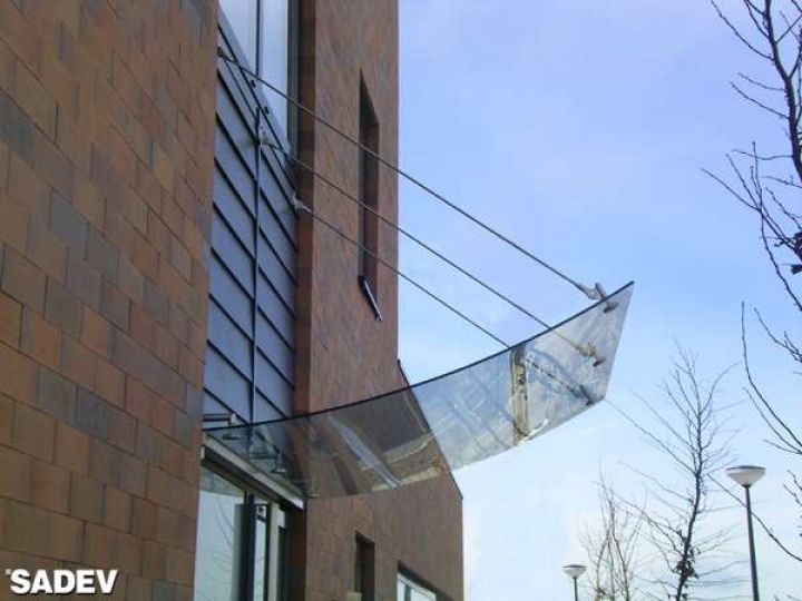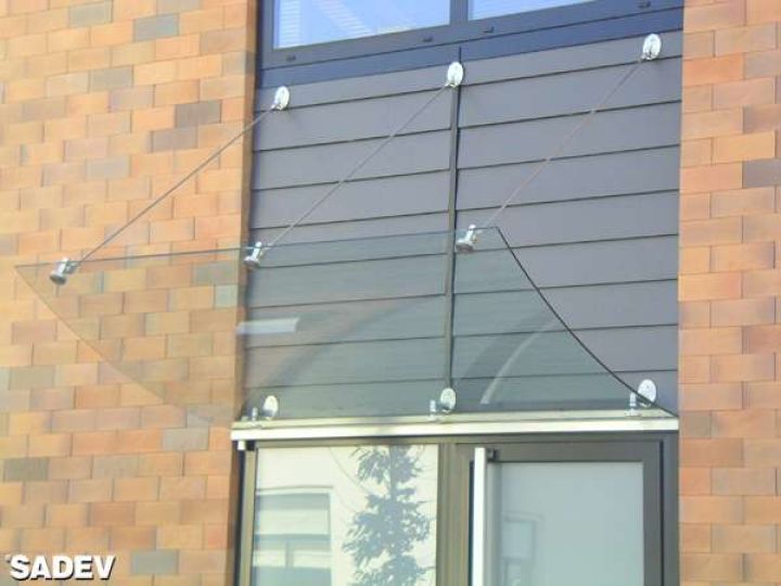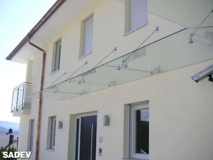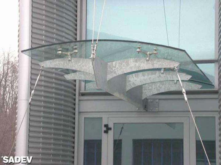 Дуже важливо, щоб виготовлення скляних козирків відбувалося з використанням міцних металевих (нержавіюча сталь) вантових розтяжок і каркасів. Зазначений метал і чудово поєднується зі скляним полотном, і добре протистоїть корозії.