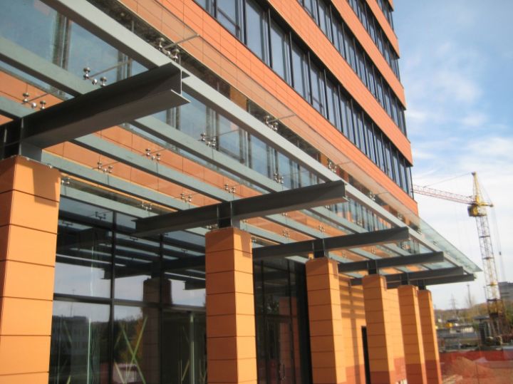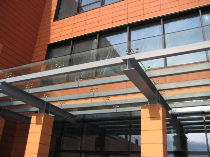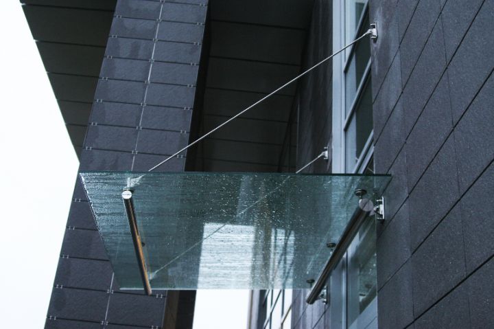 Скляні козирки будуть надійно закріплені, забезпечуючи тим самим високу ступінь захисту. А щоб подібний монтаж не потребував у майбутньому додаткових матеріальних вкладень, важливо ще на етапі проектування будівлі передбачити спеціальні закладні частини, елементи.
