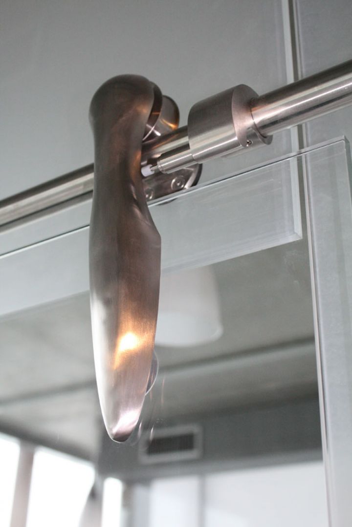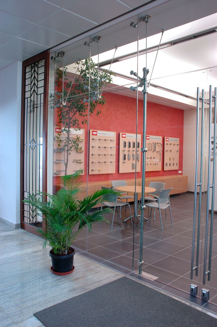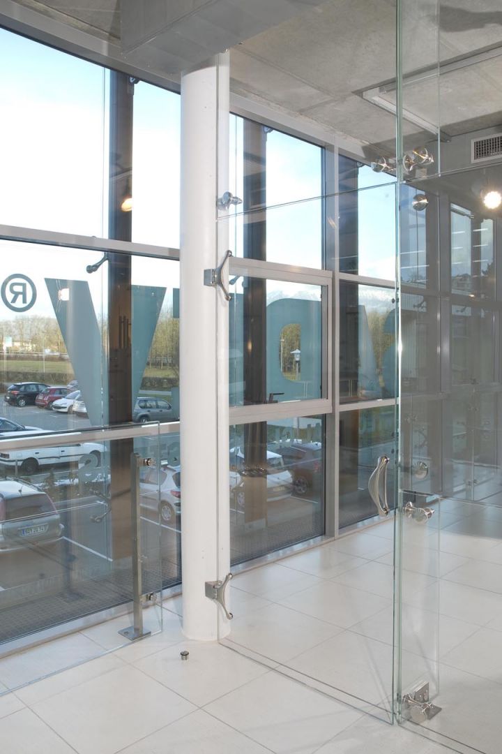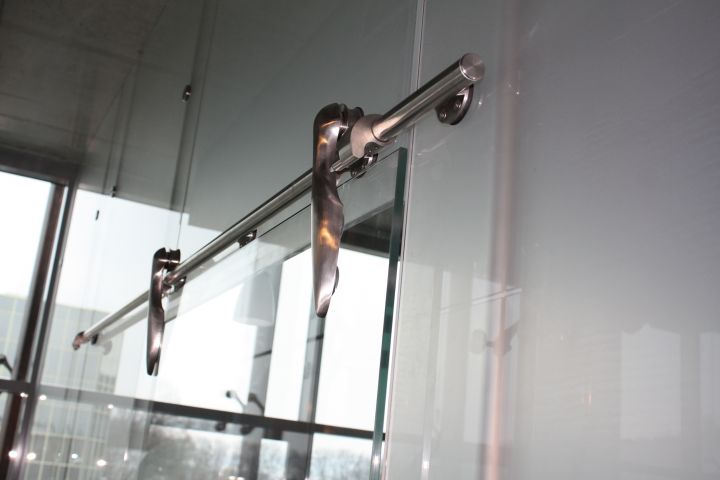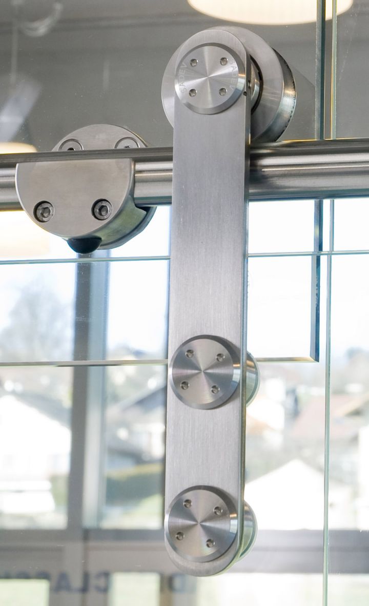 Для того щоб суцільноскляні конструкції в складі вхідних груп могли правильно функціонувати, важлива надійна, вірно підібрана фурнітура. Маються на увазі доводчики, коннектори, петлі, фітинги, що дозволяють створити дійсно красиві скляні конструкції. Фурнітура зазвичай підбирається строго під кожну вхідну групу з урахуванням конструкції останньої (розсувні, розпашні, маятникові) та побажань замовника.