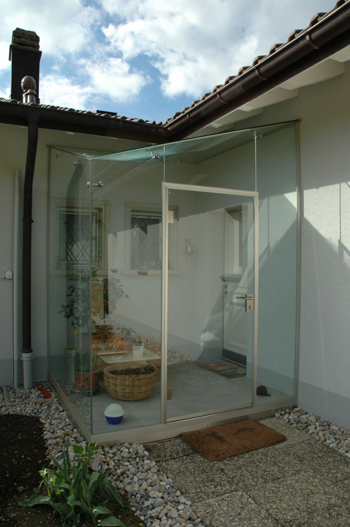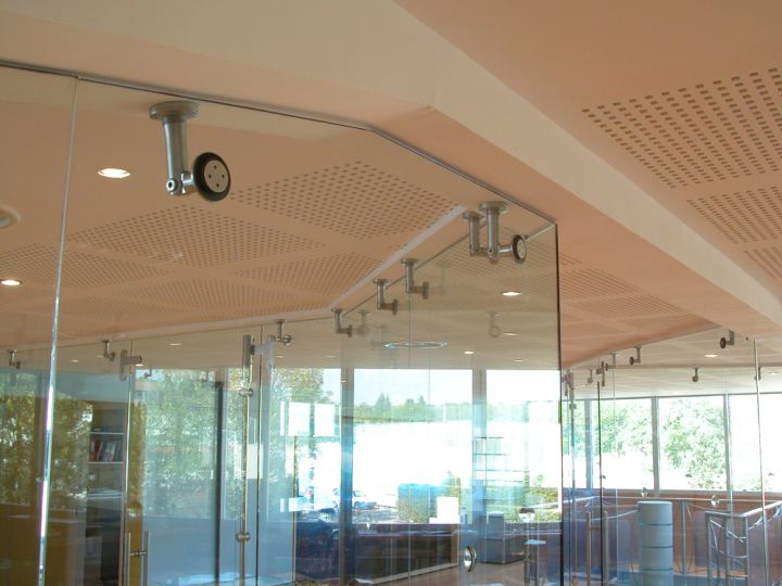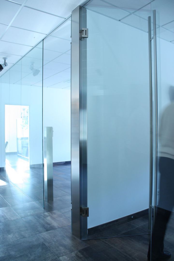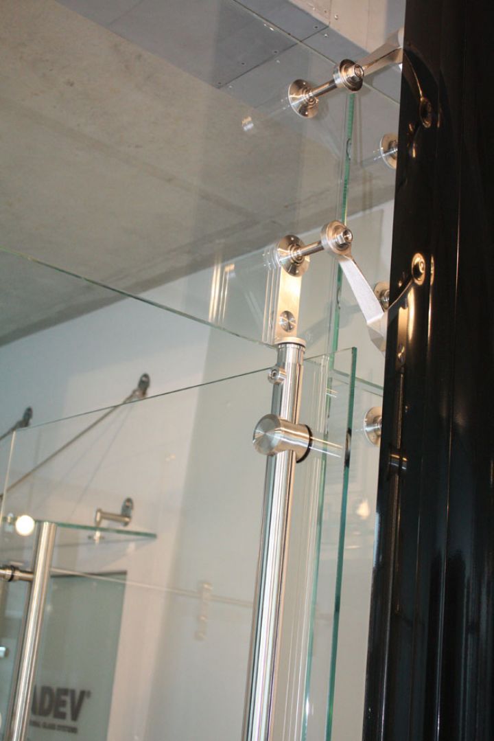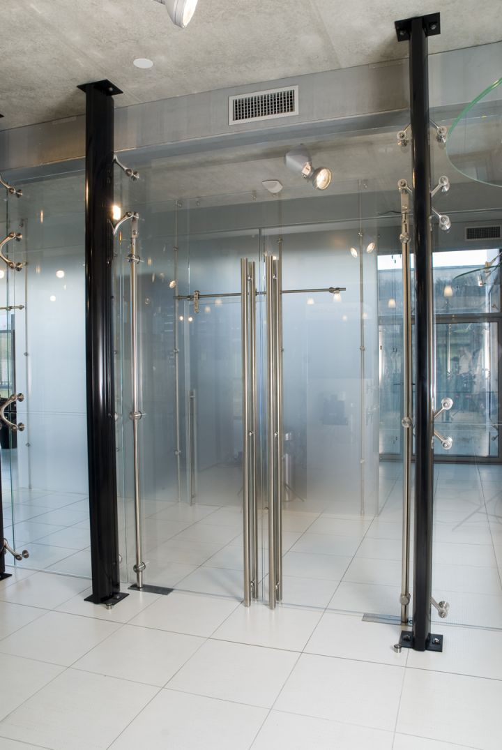 Якщо потрібно зафіксувати суцільноскляні конструкції, використовуються спеціальні П-подібні і клемні профілі. Профіль може бути виконаний зі сталі з полірованою або сатиновою поверхнею, бути забарвленим в RAL-кольори, відрізнятися анодованим виконанням.