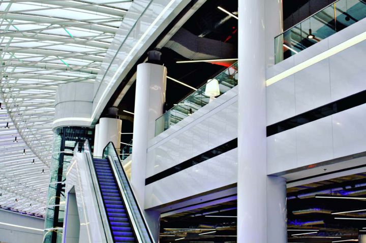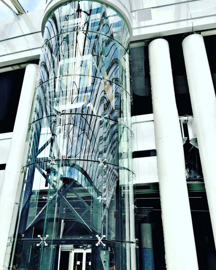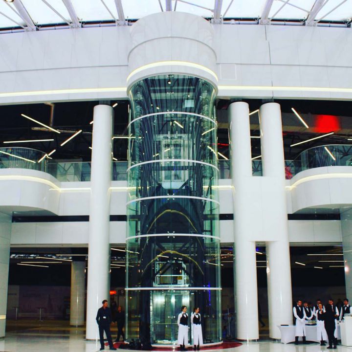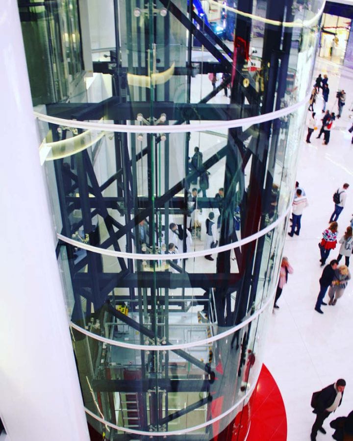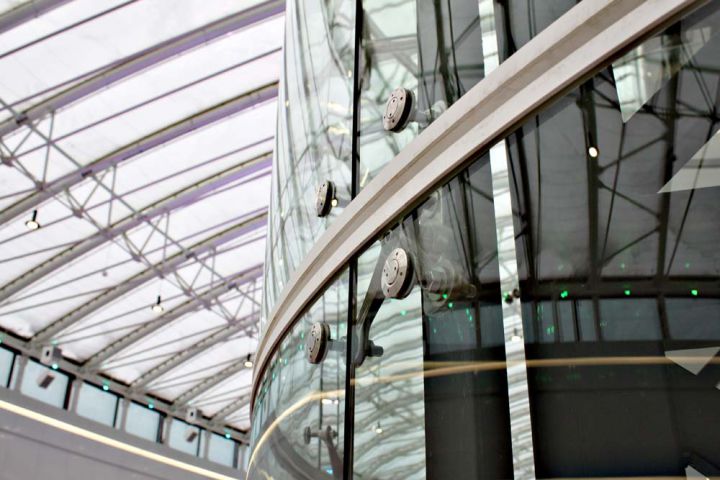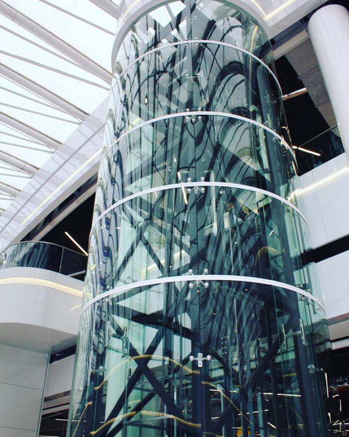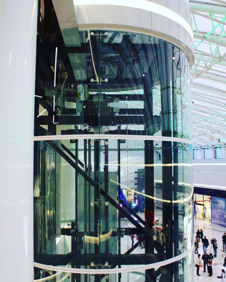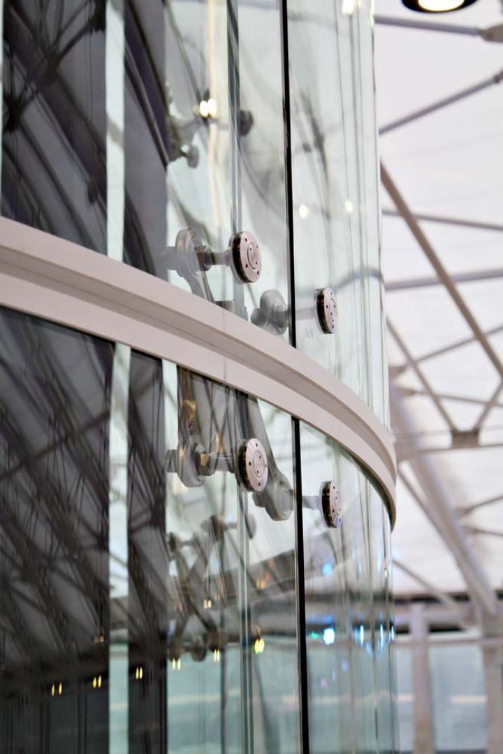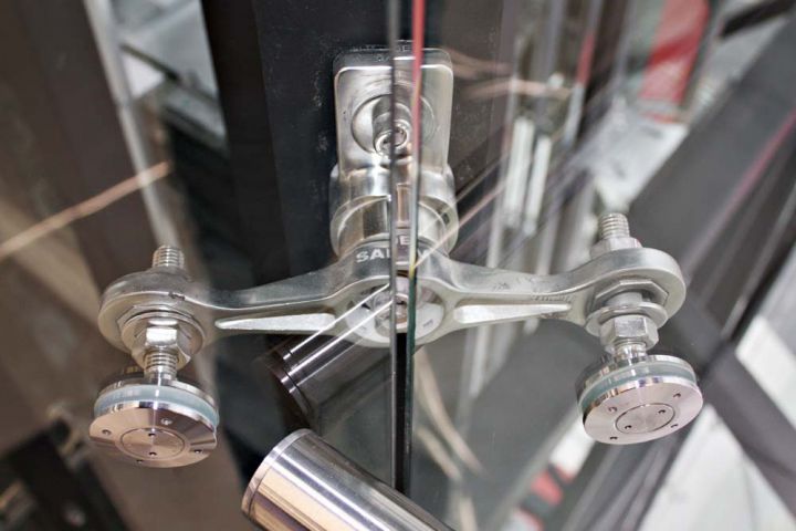 Скління ліфтової шахти на спайдерній системі «SADEV» (Площа скління 135 кв.м)